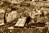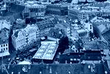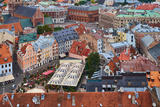 Top view on the old town with beautiful colorful buildings and a market place in Riga city, Latvia