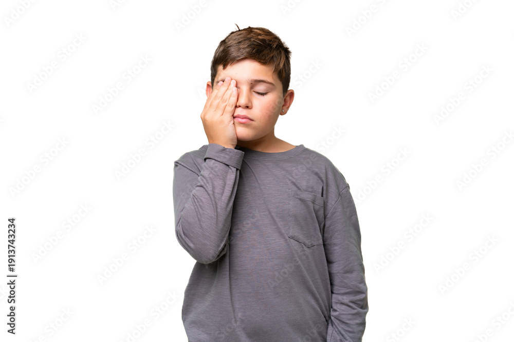 Little caucasian kid over isolated chroma key background with headache