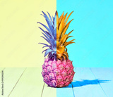 Tropical Pineapple Fruit. Bright Summer Color. Creative Minimal. Hot Summer Vibes. Pink Yellow pineapple on Sunny background. Trendy fashion Style. Pop Art