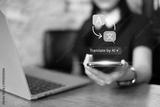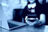Person using artificial intelligence AI translation international language global digital app online chat communication futuristic technology system innovation support assistant concept