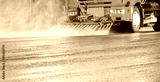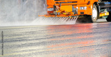 Cleaning machine washes the city street