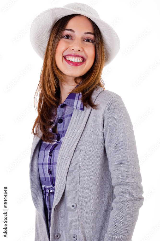 Girl in spring costume giving a broad smile
