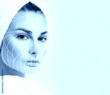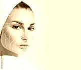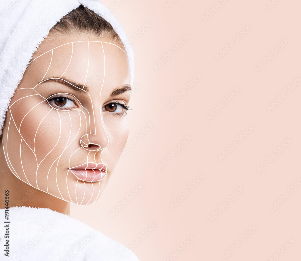 Graphic lines showing facial lifting effect on skin.
