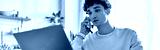 Handsome young man in a pastel green sweatshirt working in a bright modern apartment