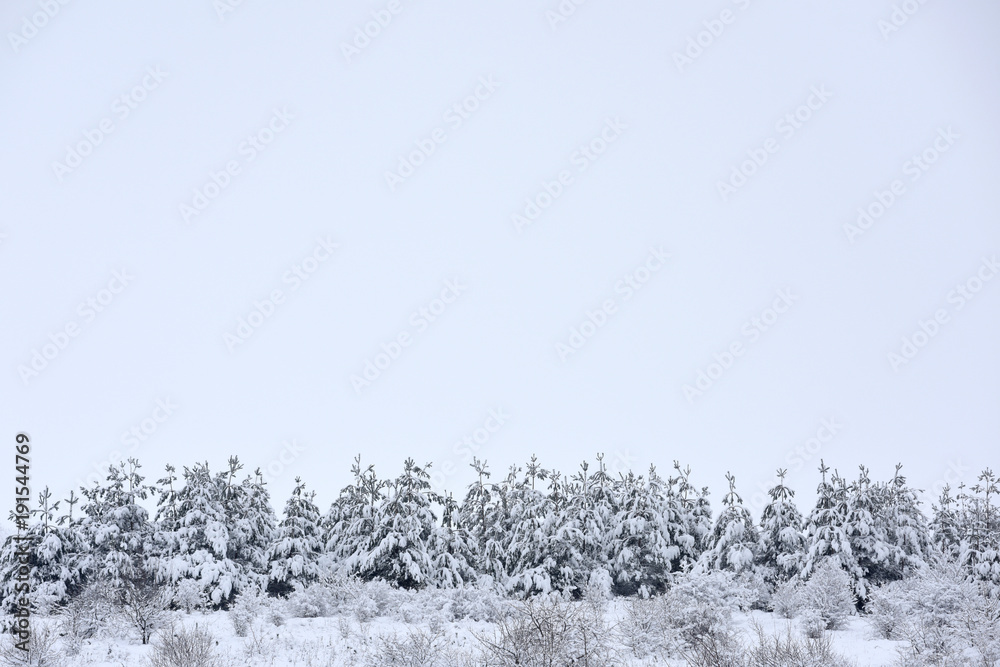 Trees covered snow. Christmas trees covered with white snow. empty space for text or information