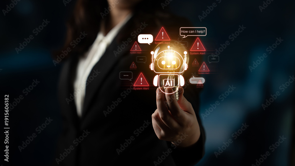 Chatbot AI helping under system alert condition with error warnings and communication risk signals. Corpus