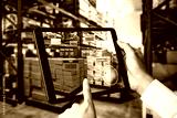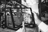 Smart warehouse management system using augmented reality technology to identify package picking and delivery . Future concept of supply chain and logistic business .