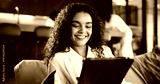 Woman, happy and relax on sofa with tablet at home for funny video, meme and streaming on break in lounge. Person, tech and smile on couch for web chat, application or social network in apartment