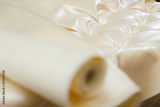 Luxury Roll of leather in the tailoring workshop. Makes a classic bed with capitone. Use for furniture crafting, fashion design and interior design. Closeup details.