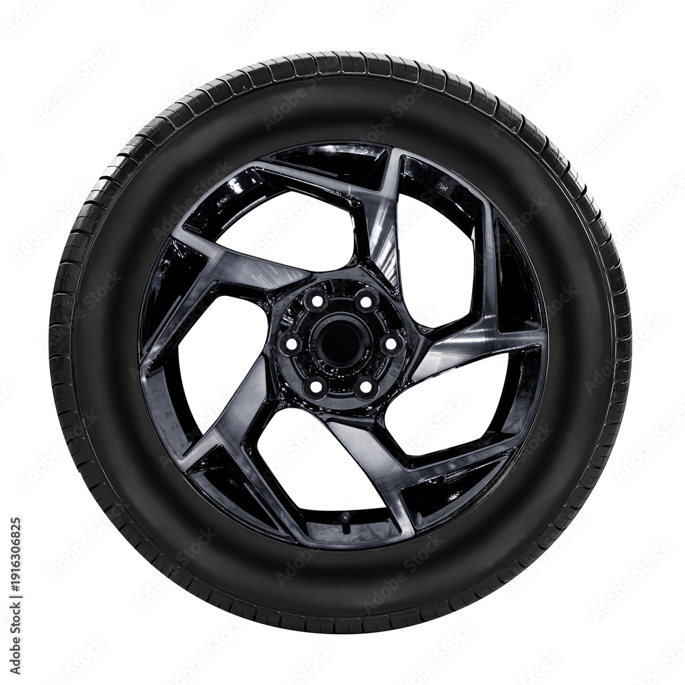 car wheel , alloy wheel sideview black color isolated on a white background