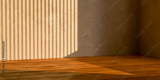 empty wooden table top with shadow on beige wall background for product display presentation natural mockup showcase interior scene 3d illustration