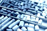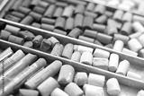 Soft pastel chalk set in pink, red, yellow, and brown in a wooden art supply case. Multicolored artist's background