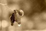 water drop at frozen rose hip in detail