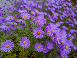 Purple aster flowers blooming in a full frame garden shot. Beauty of nature background for spring and summer concept.