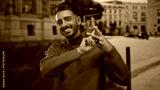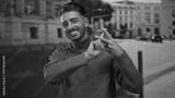 Young hispanic man showing hashtag sign with hands on urban street wearing grey sweater; social connection.