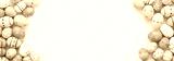 Colorful Easter Egg double border against a white banner background. Above view with copy space.