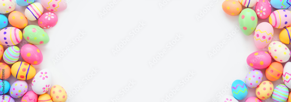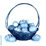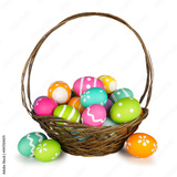 Easter basket filled with colorful hand painted Easter Eggs isolated on a white background