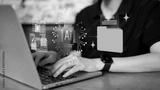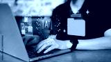 Person using AI artificial intelligence data report document information research file summary technology innovation management concept