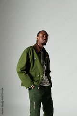 Stylish modern man stands confidently in elegant attire against a minimalist background