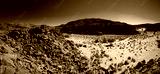 Aerial panoramic view to El Berdj mountain and erg gorge in Tassili nAjjer national park, Algeria