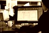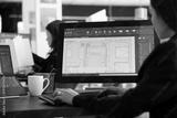 Young female architect reviews digital floor plans on monitor before construction deadline. Architectural designer evaluates measurements, layout details and project structure with precision.