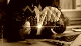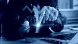 Economic caution visualized with fluctuating market graph, alert symbols, and negative data trends. Represents financial risk, market volatility, and economic uncertainty. Spline