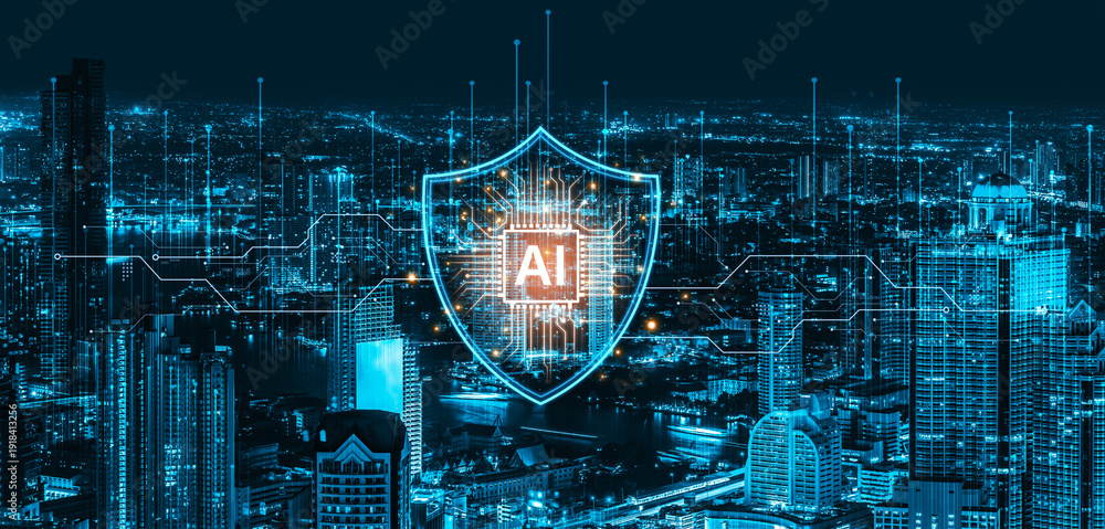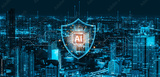 AI cybersecurity safeguards systems with encryption, access control, and AI secure data flow. Futuristic cyber security featuring AI digital shield, zero trust and AI threat detection system. Corpus