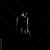 Black and white silhouette of male ballet dancer.