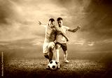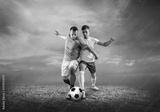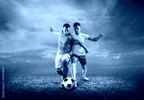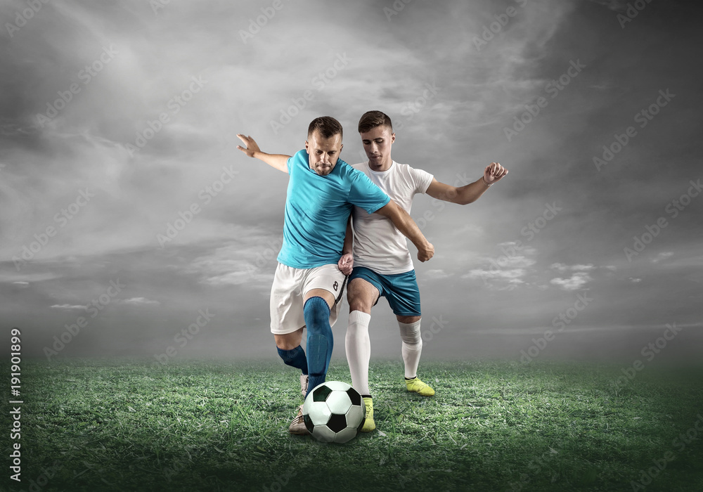 Soccer player on a football field in dynamic action at summer da