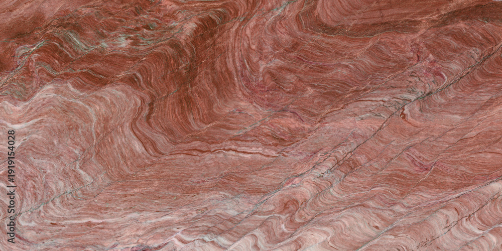 Red marble texture with wavy veins. Glossy digital tile surface.
