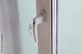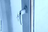 Window Handle With Keys Inserted In Lock. Security And Access Detail In Interior Setting