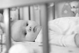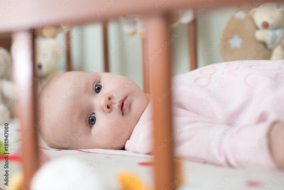 beautiful newborn lies in crib