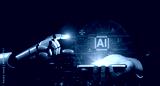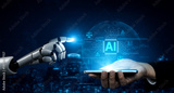 AI-generated image showing artificial intelligence control system with legal balance, cybersecurity warnings, compliance icons, and digital circuit board design Vouch