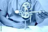 Chronic kidney disease, doctor with model for treatment urinary system, urology, Estimated glomerular filtration rate eGFR.