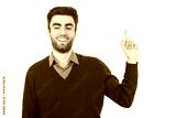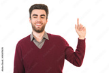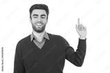 The smile man gesturing on the white background