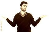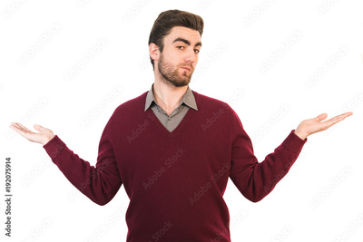 The man holding hands on the white background