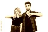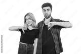 The man and woman thumbs down on the white background