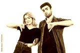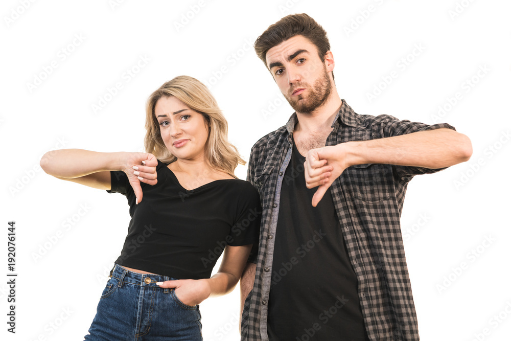 The man and woman thumbs down on the white background