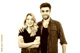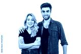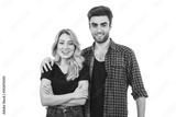 The happy man hugs a woman on the white background
