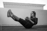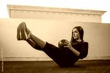 Young woman exercising with medicine ball outdoors.
