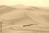 Camels caravan in Desert Sahara in Morocco, dunes in background