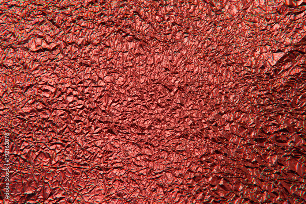 Texture of crumpled red foil. Metallic background