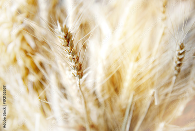 gold yellow wheat grain plant for healthy organic food in soft summer natural background