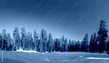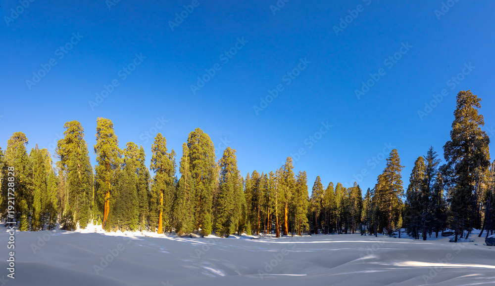 beautiful old sequoia trees like dancing figures under blue sky in winter landscape at sequoia tree national park