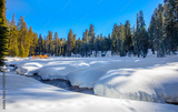 beautiful old sequoia trees like dancing figures under blue sky in winter landscape at sequoia tree national park