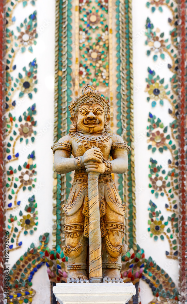Demon Guardian at the entrance to the Hor Phra Naga in Grand Palace. Bangkok, Thailand