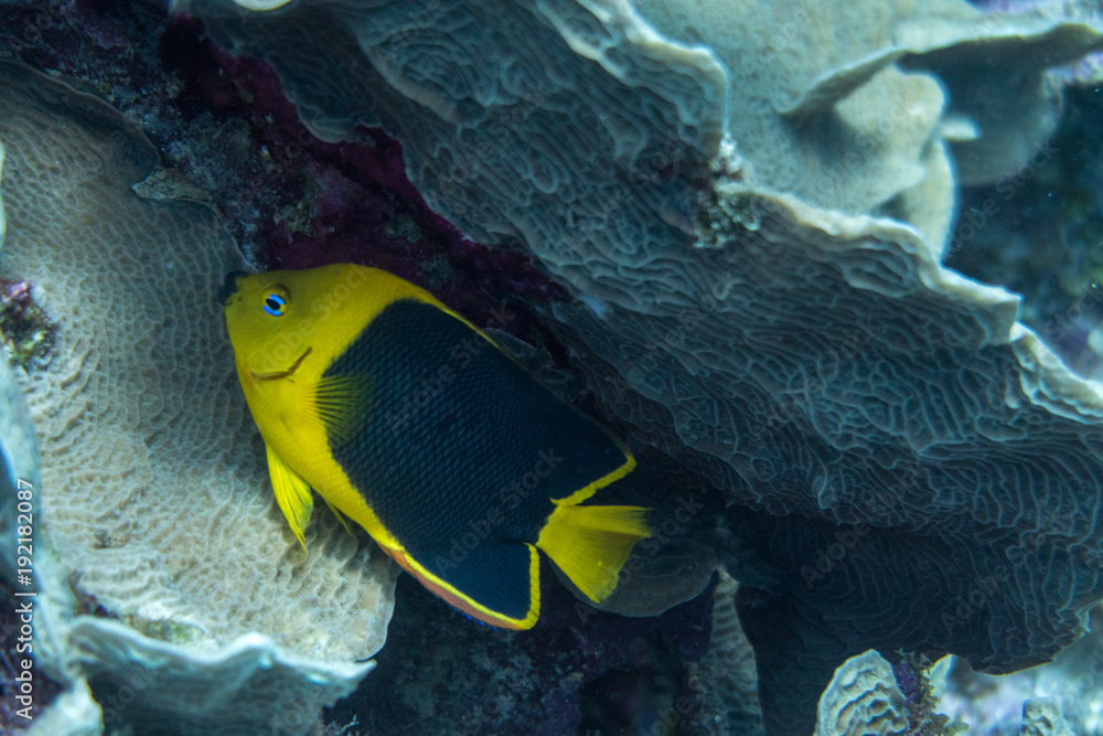 The rock beauty (Holacanthus tricolor) is a species of marine angelfish of the family Pomacanthidae. Other common names include corn sugar, coshubba, rock beasty and yellow nanny.