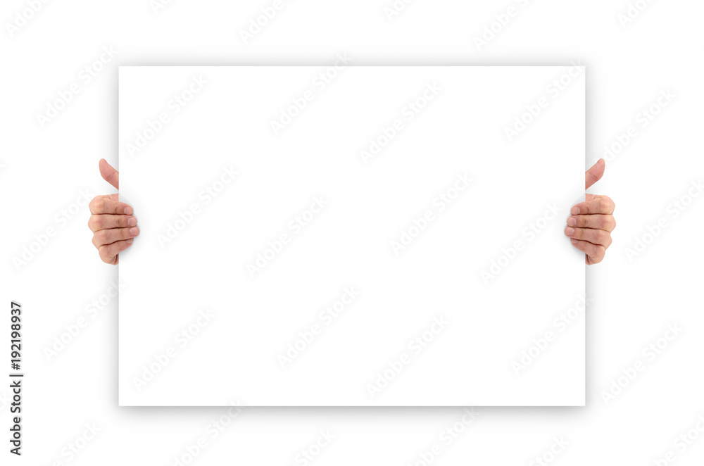 Hands holding an empty white advertising banner
