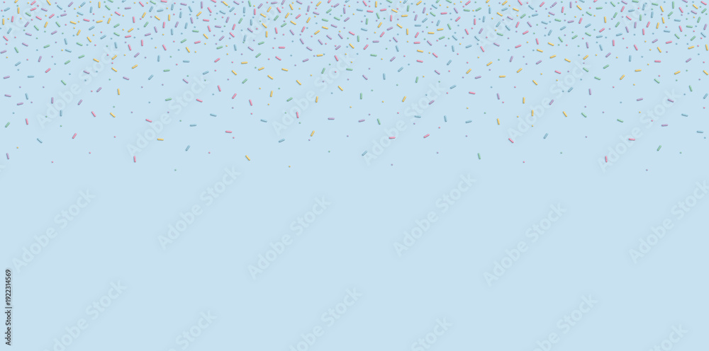 Soft pastel confetti sprinkles scattered on light blue background