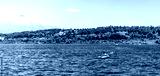 Canoeing Kayaking on Lake Villarica Chile overlooking the volcano Villarrica Kayak on lake Villarica. Baner